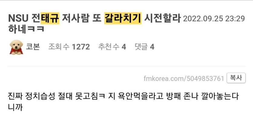 보면은 니가 진짜 갈라치기식 글 적는게 심하더라