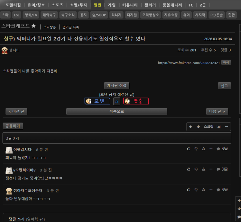 - 다음글정선대에는 델리박 같은 칼잡이가 필요함 26.03.05