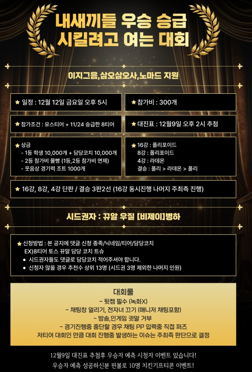 - 다음글최도랑 방송 공지에 유스 대회 따봉 버튼 요청 25.11.29