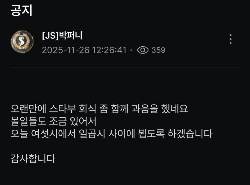 방송 던지려다가 마지 못해 공지 쓰고 키는 느낌