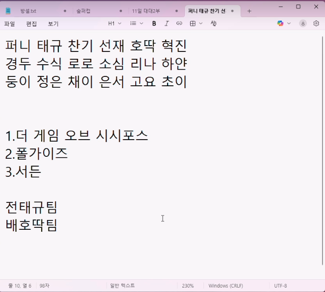 어제 혜로로 메모장에 쓴거보니