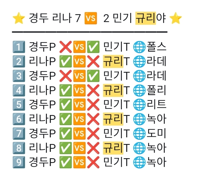 정경두+빵리나 VS 정민기+규리야 9판 끝장전 결과!
