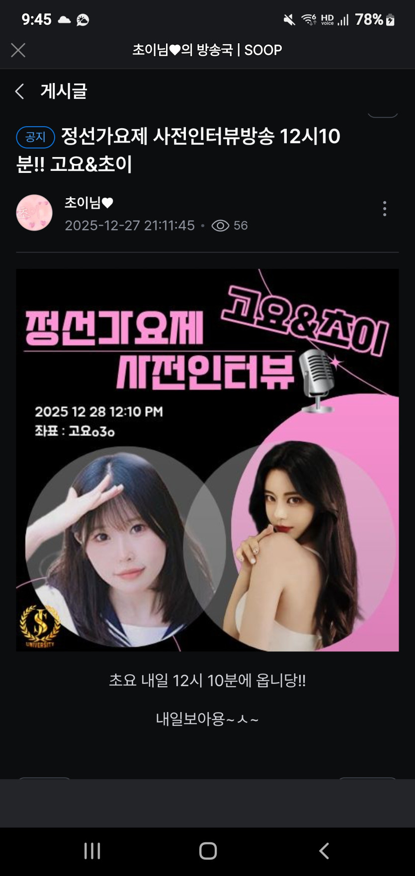 내일 초이 고요 공동 공지