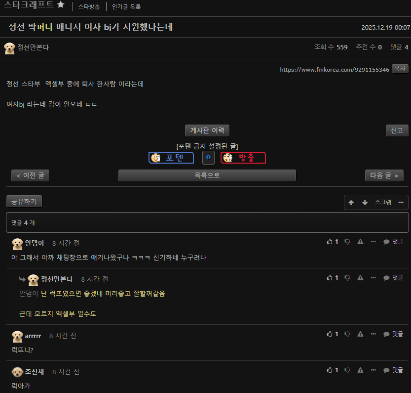 여자bj라고 팸코에 글 올라오던데 스타부,엑셀부 누구냐??