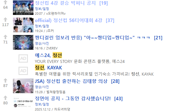 정선 검색해서 인기글 보는데 없어서 없다 하는데