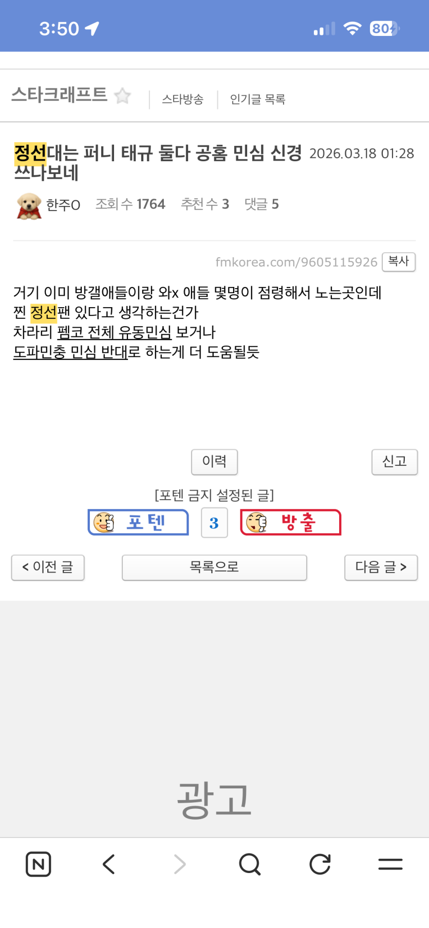 스타 게시판이 몇몇 악성글로 도배되는 상황을 보면서