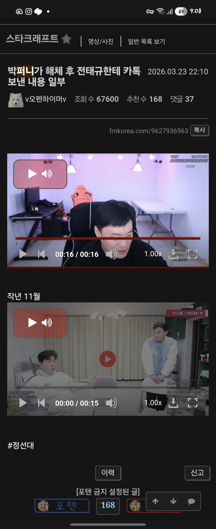 - 다음글박퍼니 근데 진짜 스타 1판도 안했네, 대학 그만하길 잘헀다 26.03.24