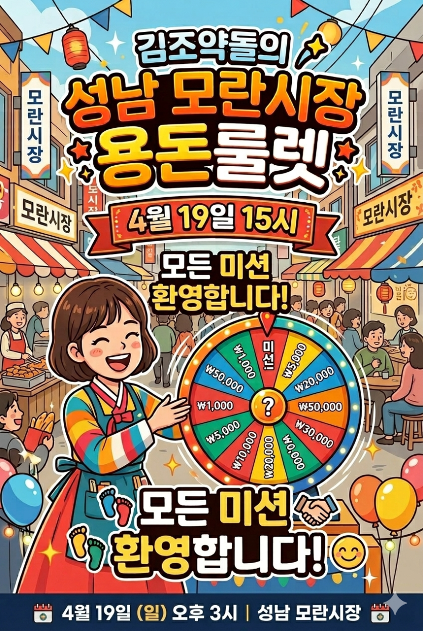 내일 19일 오후 3시 일요일! 성남 모란시장 용돈룰렛