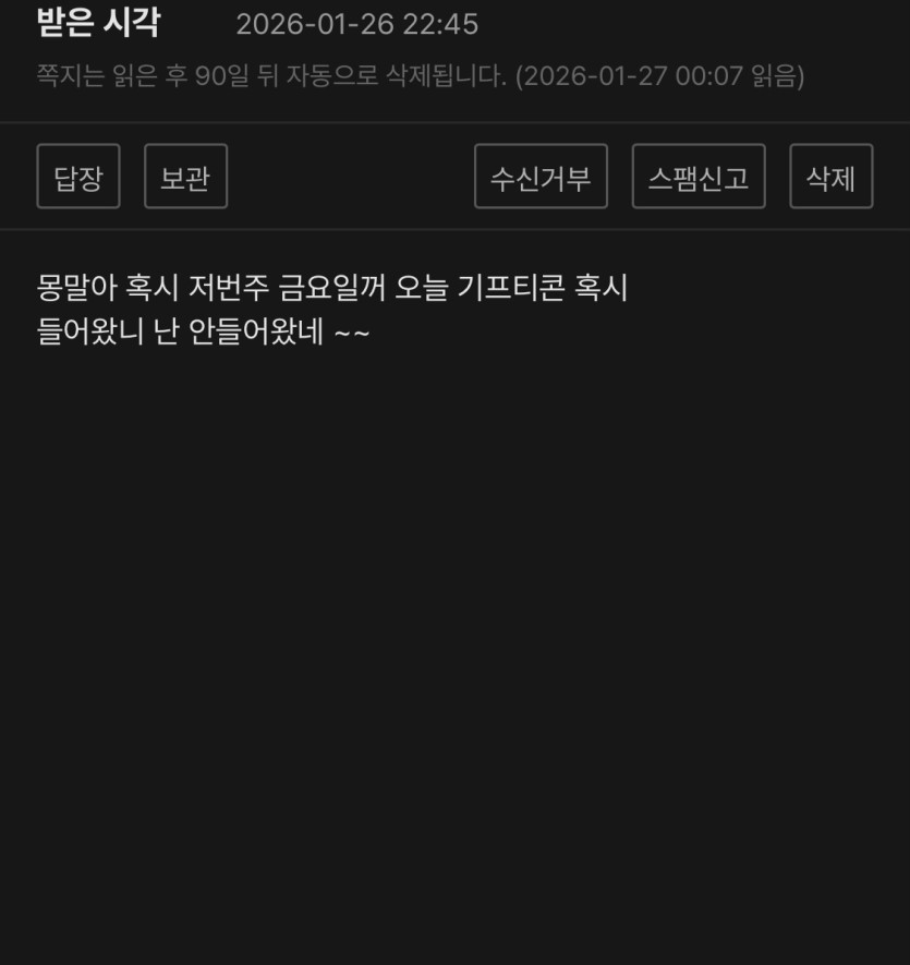 형님들한테 계속 쪽지 와요~