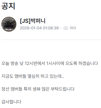 공지보고 다시 일어나서 애들방 켜두고 왔다 ㄹㅇ