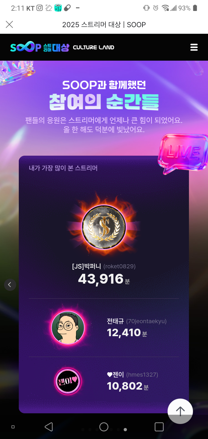 5년 연속 올해의 스트리머 상 받는 박퍼니 화이팅!!